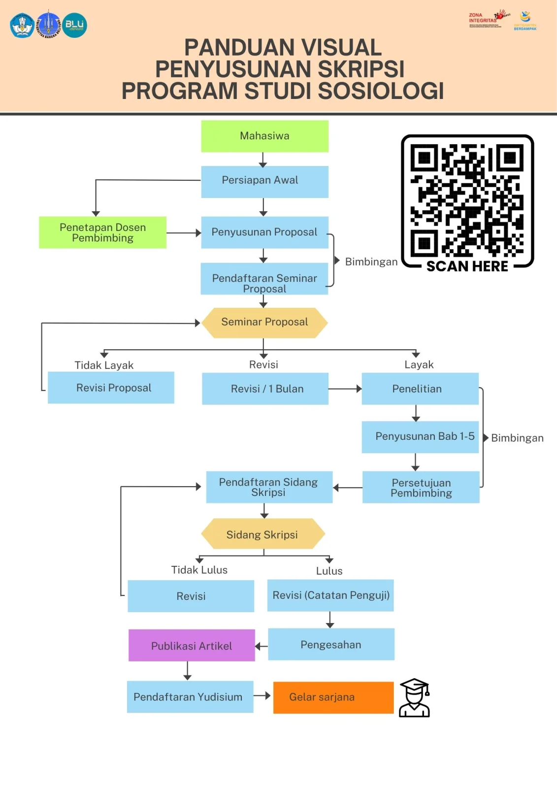 Dalam upaya meningkatkan efisiensi layanan akademik, Program Studi Sosiologi merilis Panduan Visual Penyusunan Skripsi terbaru. Panduan ini dirancang untuk memberikan gambaran utuh tahapan skripsi, mulai dari persiapan awal hingga pendaftaran yudisium.