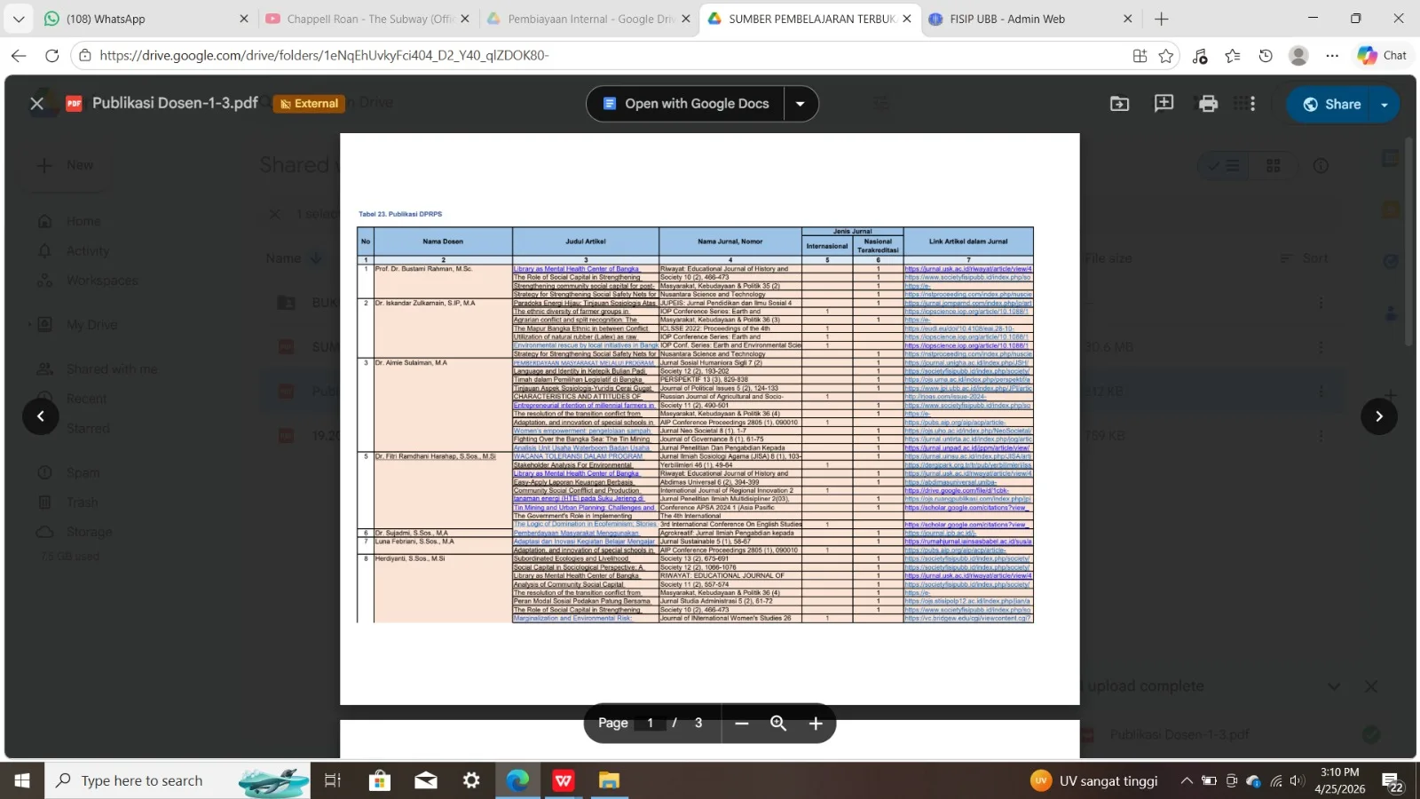 Publikasi Dosen 26 Apr 2026 32 Publikasi DosenLink unduh: https://drive.google.com/file/d/1mLjpIXatUuF6BRcQ7sNlbK__skekQzh4/view?usp=drive_link